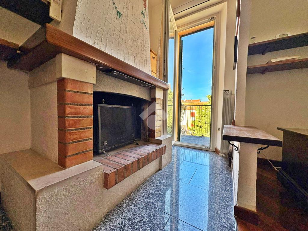Soggiorno con camino e uscita su un secondo terrazzo